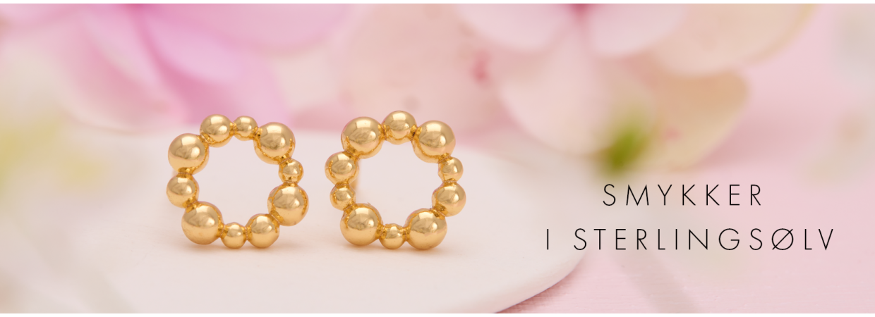 Øreringe, ørestikker, halskæderarmbånd og fingerringe er alle produceret i sterlingsølv (925) og forgyldt sterlingsølv belagt med 18kt guld. Indimellem leger vi også med perler, farvet emalje, halvædelsten og porcelæn. Det er vigtigt for os at skabe smukke og tidsløse smykker i god kvalitet.