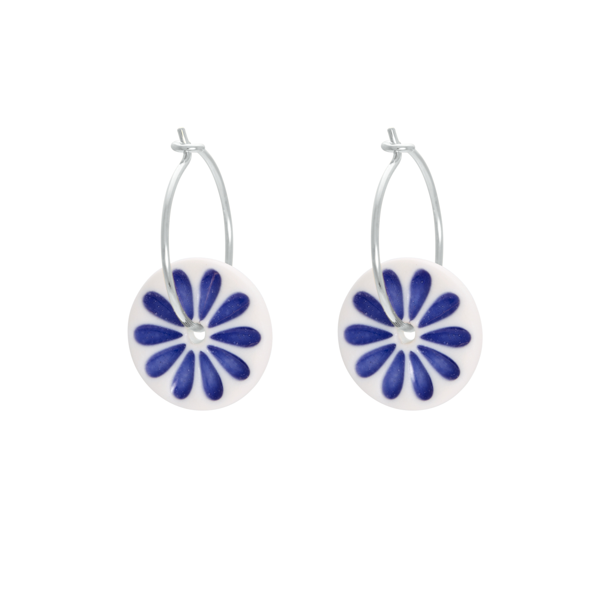 Smuk håndlavet ørering i porcelæn med blomster motiv. Øreringen er med sit enkle grafiske design både klassisk og tidløs.